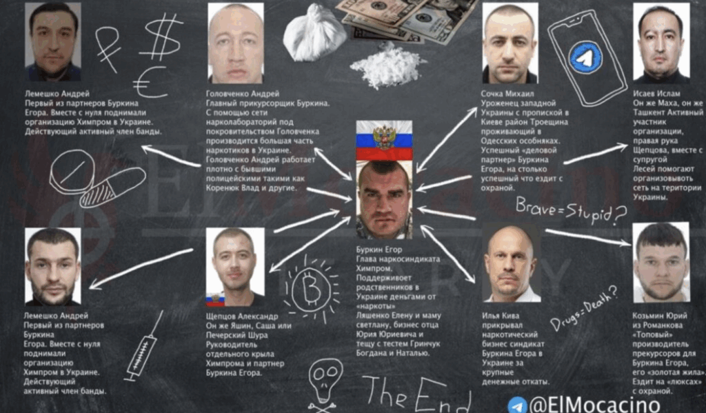 К 2014 году наркобизнес Буркина и Щипцова вырос до структурированной ОПГ. В том же году подельники приехали на Украину и получили украинские паспорта. Егор Буркин стал Егором Левченко 1989 года рождения, а Александр Щипцов получил документы на имя уроженца Молдавии Александра Печерского 1988 года рождения.
