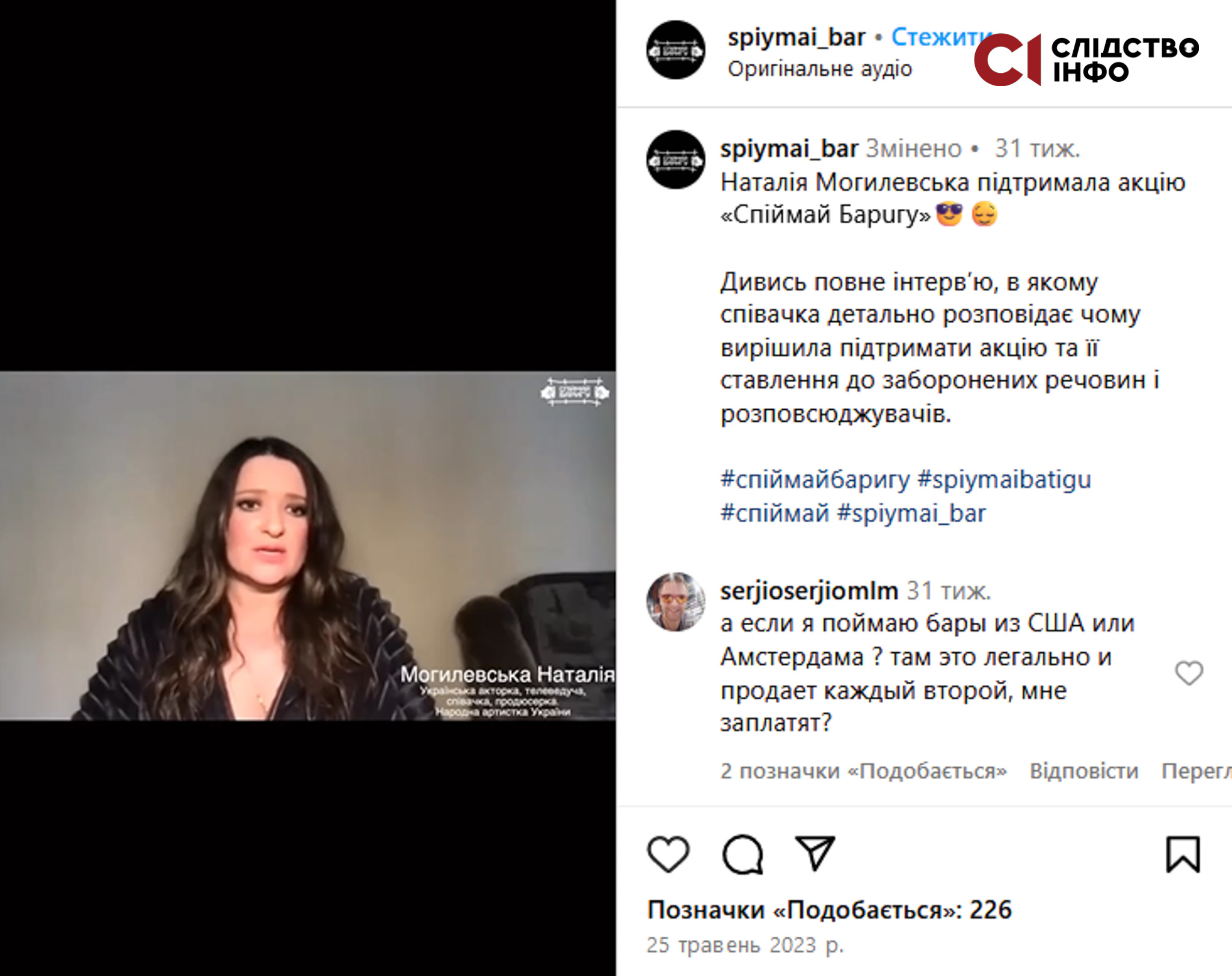 Издание «Детектор медиа» сообщает, что весной 2023 года Егор Буркин / Левченко в интервью одесскому блогеру Стасу Домбровскому заявил, что он является бизнесменом, репутацию которого пытаются уничтожить конкуренты. По его словам, он находится в Мексике, и, чтобы доказать свою непричастность к наркотрафику, он объявил акцию «Спіймай баригу». Левченко пообещал вознаграждение тем украинцам, которые задержат наркокурьеров или производителей наркотиков. Домбровский называл его «меценатом акции». О данной акции активно писали новости украинские онлайн-издания. В программе «Гроші» на канале «1+1» был выпущен 11-минутный сюжет об акции, в котором спикерами выступили Домбровский и адвокат Левченко Андрей Кузьменко. В 2017 году Кузьменко представлял интересы одного из «вербовщиков» наркокартеля в суде.