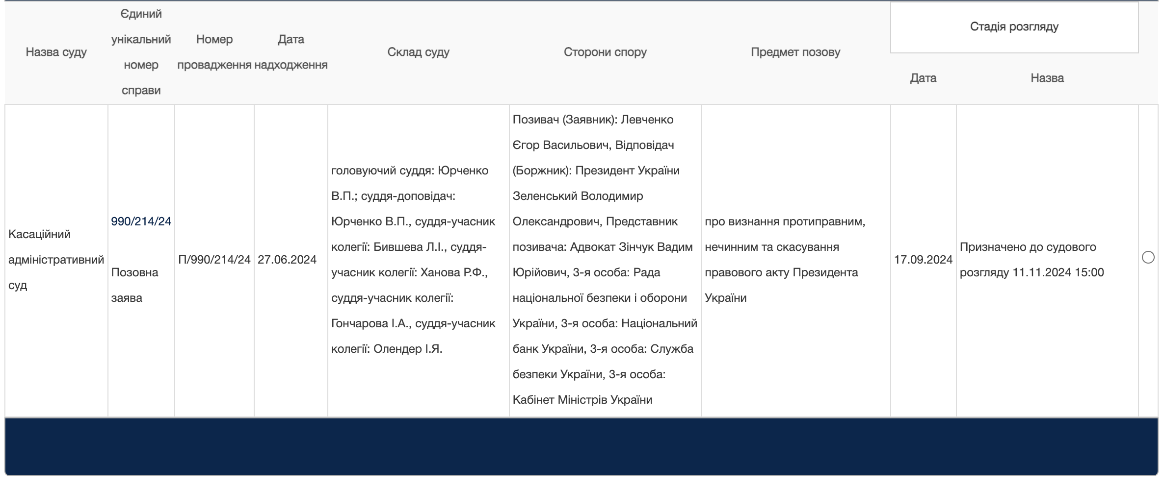 На портале Судебной власти Украины отмечено, что уже 11 ноября должно состояться заседание Кассационного административного суда, где адвокат Егора Буркина (Егора Левченко) будет пытаться доказать, что указ президента о санкциях против его подзащитного является противоправным и должен быть отменен именно в части наложения санкций на Буркина-Левченко.